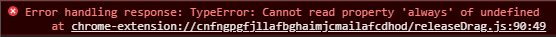 Error handling response: TypeError: Cannot read property 'always' of undefined at chrome-extension://cnfngpgfjllafbghaimjcmailafcdhod/releaseDrag.js:90:49